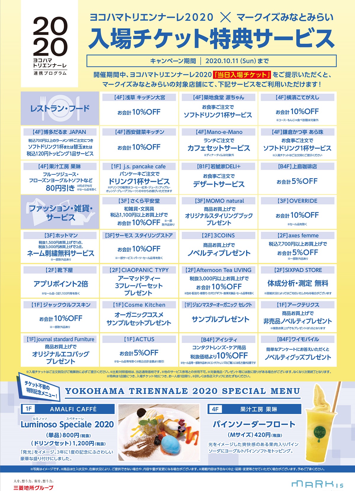 マークイズみなとみらいチケットをお持ちの方へ、来場前に、知っておきたい「ヨコハマトリエンナーレ2020がもっと楽しめる情報」をご紹介します。