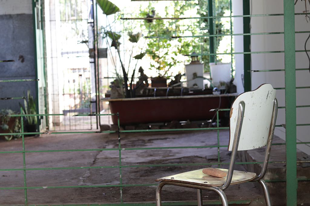Mr. King built a cage that he lived in. The cage was modest, and connected to the outside through a complex of patched up wires. Fish swam happily in a bath tub protected by the cage. A bird in a cage within a cage chirps away. Outside Mr. King’s cage a cactus grows taller than the cage, a crinum lily is in bloom as the aroma from aubrietia fills the air. Mr. King is gone.