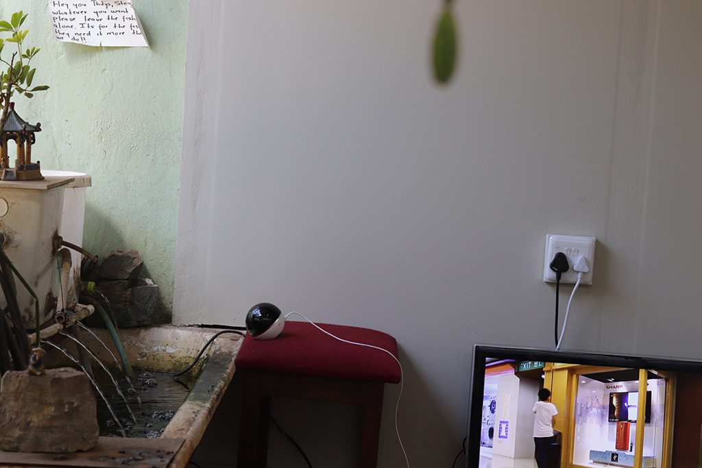 Universal remote control in hand, Sunday Lai Long Sang steals time from TVs in shopfronts of shopping malls after opening hours.