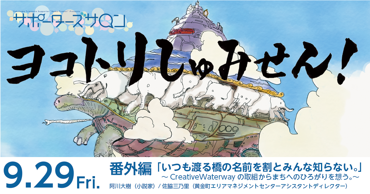 今回のサポーターズサロンでは、ヨコトリ2017のテーマの一つ「接続」ともリンクする、Creative Waterwayの全体像についてご紹介します。